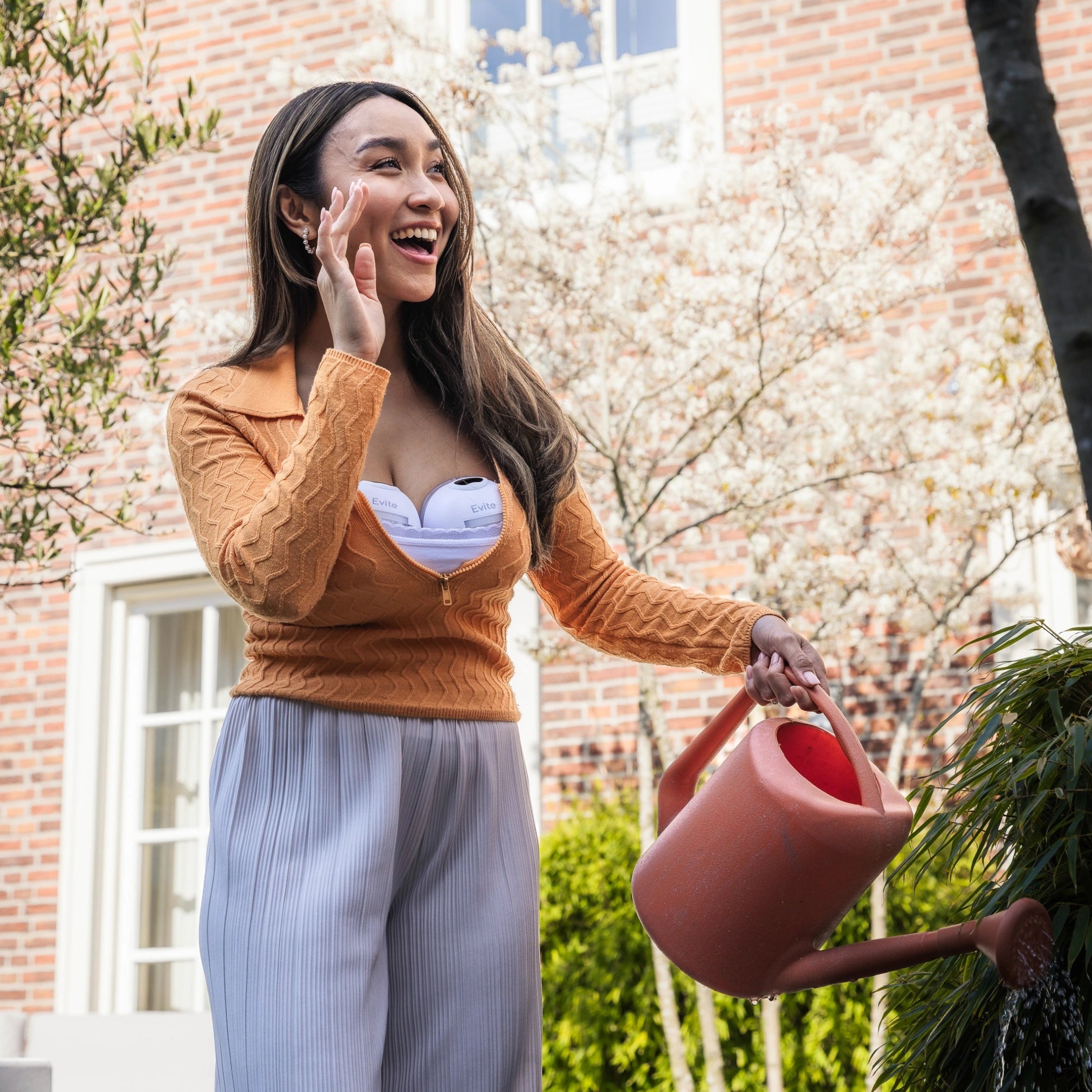 De handsfree borstkolf van Evite past zich aan jouw ritme aan. Licht om te dragen, fluisterstil in gebruik en ontworpen om je in alle rust te ondersteunen. Of je nu thuis bent, onderweg of aan het werk, je kolft comfortabel en discreet. Op jouw moment, op jouw manier.